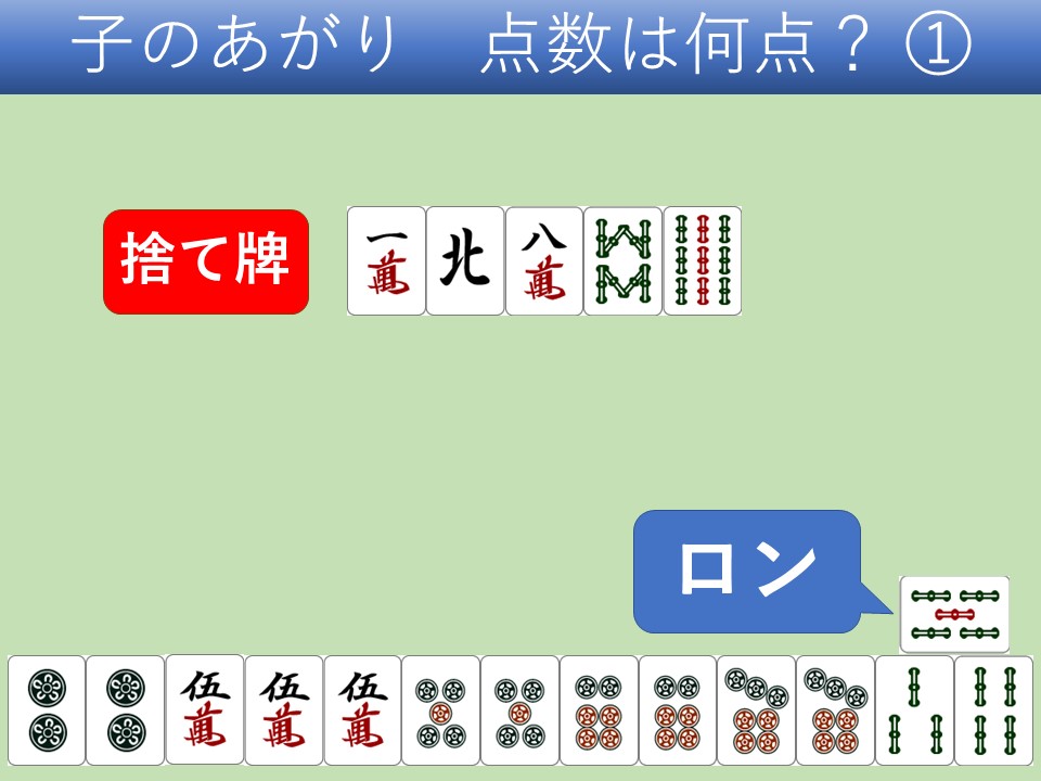 ドラなし 子 ロンあがり この点数は? …