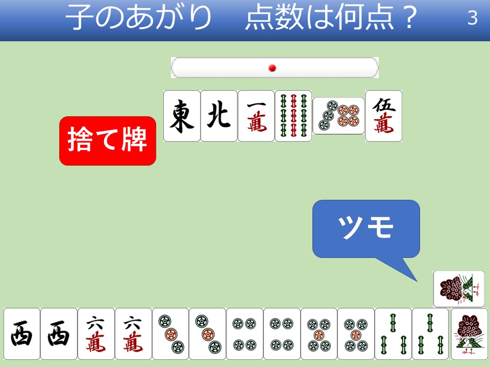 子 ツモあがり 点数は何点でしょうか? …